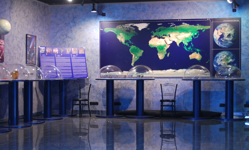 La sala que se abre nada más cruzar el lindar de la puerta del planetario alberga desde 2007 una exposición permanente de meteoritos, con un suelo tan limpio que las baldosas parecen espejos. Acostumbrada como estoy a las grandes extensiones de los jardines botánicos, una exposición tan compacta se me antoja pequeña, pero pronto me sacarán de mi equivocación: Salvador me comenta con orgullo mal disimulado que es una excelente colección, muy completa, con piezas de origen tanto lunar como marciano.